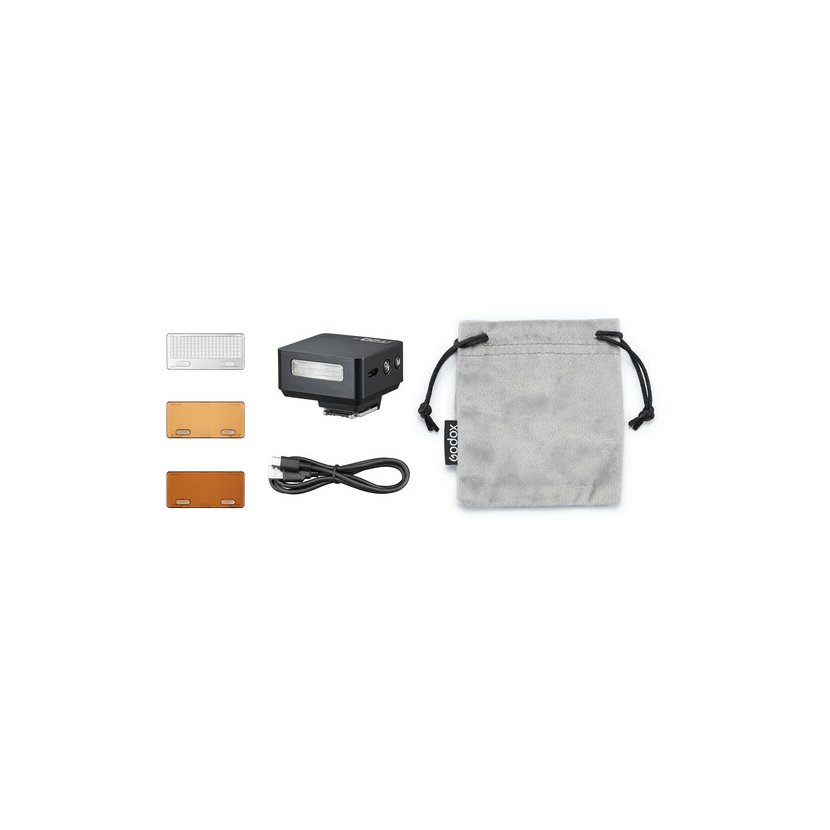 Godox iT20 R je ultra-kompaktní TTL miniaturní blesk pro fotoaparáty Ricoh s paticí hot shoe, který nabízí automatické TTL měření expozice i manuální ovládání. Poznámka: Tato verze je kompatibilní pouze s fotoaparáty Ricoh GRIII a GRIIIx. Blesk disponuje šesti úrovněmi výkonu od 1/32 do 1/1 s nastavením v krocích ±1/3 pro přesné doladění expozice. Díky vyhrazenému tlačítku lze rychle přepínat mezi režimy TTL a manuál. Vestavěný lithiový akumulátor nabíjený přes USB-C poskytuje až 700 záblesků při plném výkonu s dobou recyklace 1,5 s; nabíjení trvá přibližně 1 hodinu. Blesk má intuitivní ovládání s přehlednou obrazovkou zobrazující zbývající úroveň nabití baterie. K hlavě blesku o hmotnosti 45 g se magneticky připevňují příslušenství – součástí je rozptylová čočka (spreader) a dva CTO barevné filtry (1/1 a 1/2). Kompaktní čtvercový design s rozměry 4,1 × 4,1 × 3,3 cm je ještě menší než model iT22, což z něj činí ideální volbu pro začátečníky i pro zkušené fotografy hledající praktický blesk na cesty.